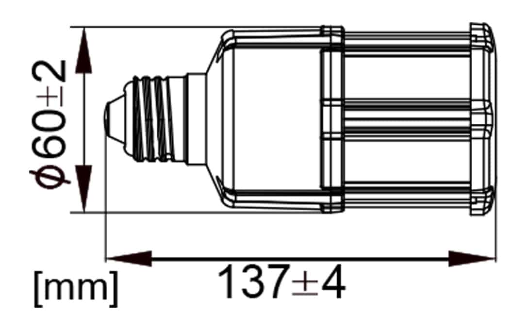 137mm (5 3/8”) From Top of Light to Bottom of Screw Base |